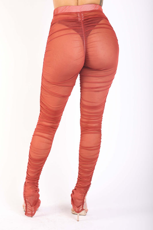 Ruched mesh leggings: TERRA COTTA