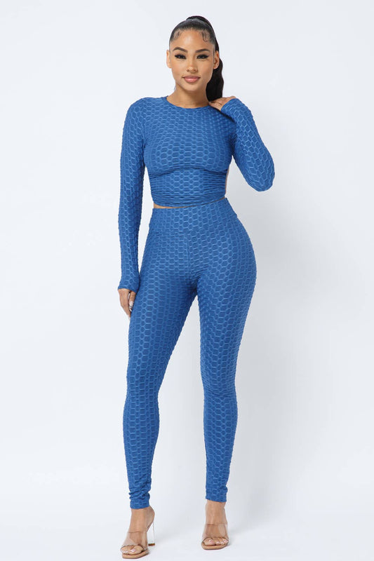 Honeycomb Open Back Tie Top and Leggings Set